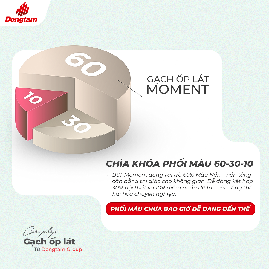 Với sự kết hợp giữa bảng màu trung tính, nguyên tắc phối ghép khoa học và bề mặt hoàn thiện đa dạng, Moment không chỉ là vật liệu ốp lát, mà còn là giải pháp thiết kế giúp kiến tạo không gian sống hài hòa, tinh tế và bền vững.
